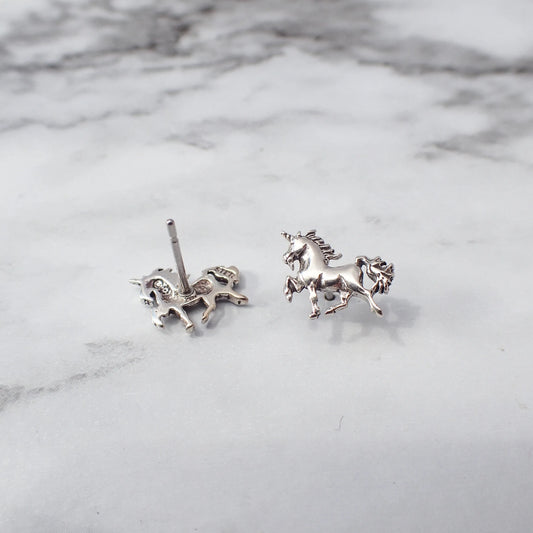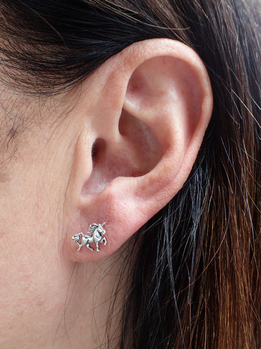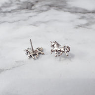 * 1 pair of sterling silver unicorn stud earrings with sterling silver backs